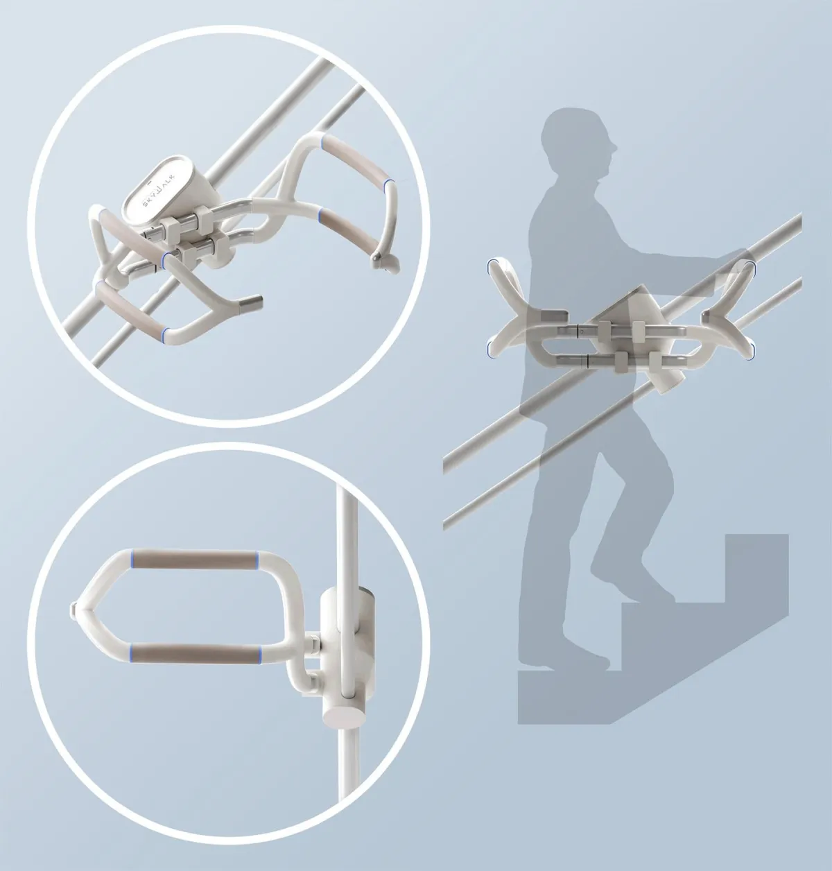 Se comparant à une marchette pour escaliers, le Step Up offre un appui pour les bras, à la montée et à la descente.